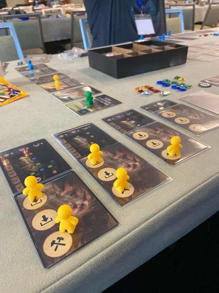 Collecting gems allows you to compete Artisan Requests, gaining Victory Points for turning in a specific set of Gems. Finding Artifacts within the Mine earns you bonus special abilities that could turn the tide of the game!