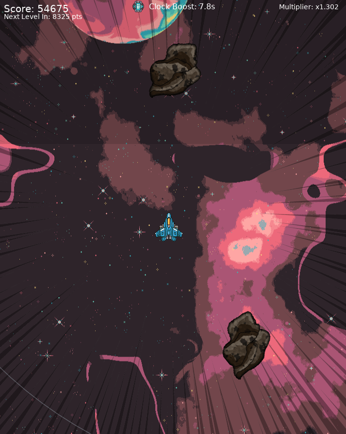 Use your mouse to steer your ship, avoiding asteroids and enemy ships. The longer you survive, the higher your score! Collect powerups for special effects and additional points Flying within the upper portion of your screen (The Deadzone) increases your score multiplier, allowing you to score massive amounts of points!